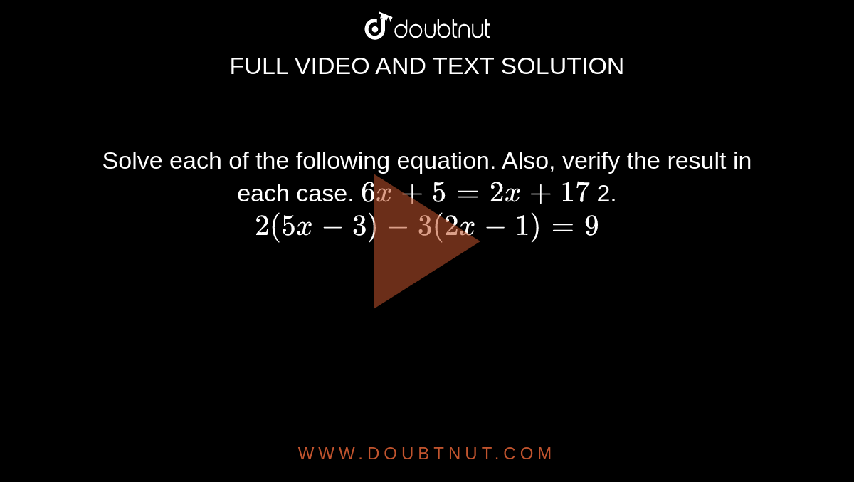 Solve Each Of The Following Equation Also Verify The Result In Each Case 1 6x 2 9 3x 5 18 1 3 2 M M 1 2 1 M 2 3